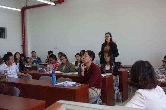 为适应信息化、科技化趋势,增强学院教育创新能力,9月28日上午,我院特邀山东师范大学数学与统计学院副教授、数学教学实验中心主任、山东师范大学教学名师、山东师范大学教学能手获得者杨杰老师和生命科学学院副教授、硕士生导师、全国高等院校青年教师教学技能比赛二等奖、山东师大首届十大教学能手第一名获得者尹苗老师来我院开展“混合式课程改革”经验交流会。会议在长清湖校区史学楼328教室举行,由我院教师教育中心主任楼建军副教授主持,学科教学(历史)专业学位点负责人仇世林、优秀教师代表燕慧,青年教师宋欣欣和孙小娇以及学科教学(历史)专业研究生参与了本次交流会。
