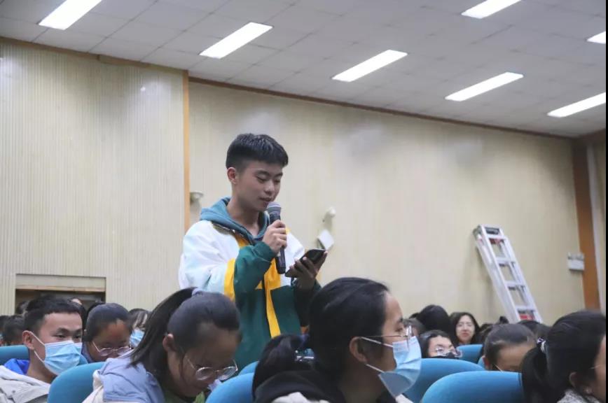 继之,刘本森教授对大学生活中人际交往、参加活动、发展兴趣爱好和特长方面做出了具体的指导。他强调,同学们要珍惜大学同学之间宝贵的情谊,积极参与各项活动,加强体育锻炼,培养爱好特长,树立正确的金钱观,做有意义的工作,努力充实自己。最后,他引用杨国强先生的“人要晓得自己成就自己”来激励同学们学会自我规划,做好取舍,要敢于做梦,并要坚持追梦,自己把握自己的人生。