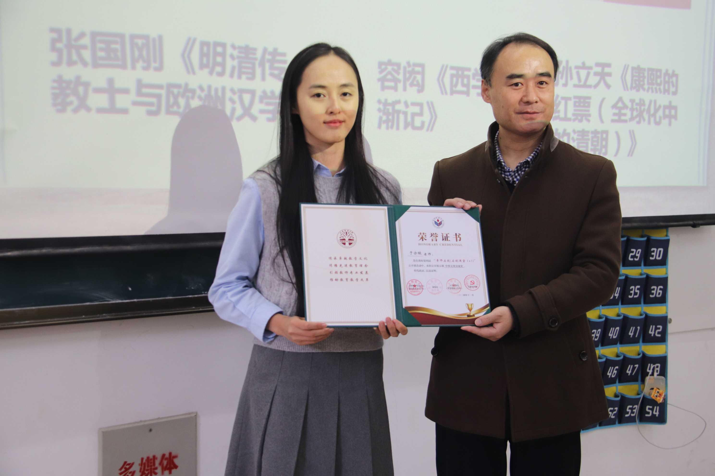 课后,楼建军教授和杜学霞副教授为于亦璇及其指导教师杨蕾教授、毛利霞副教授颁发荣誉证书。
