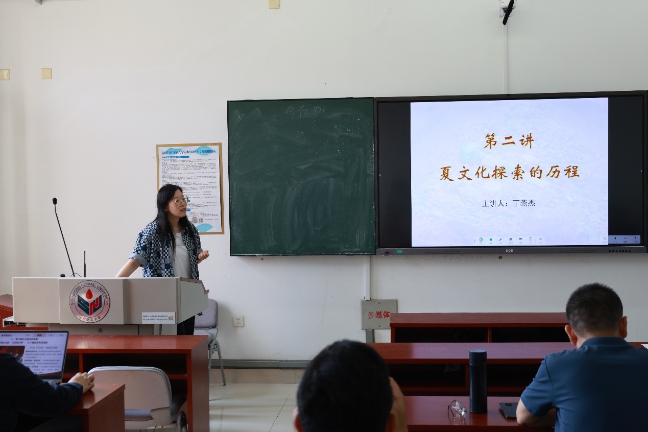 丁燕杰老师以“夏文化探索的历程”为题进行了精彩展示,通过视频片段导入,激发了听众的兴趣,引出了夏文化探索的问题。她指出可以从考古学的角度探索夏王朝,多角度开展研究。