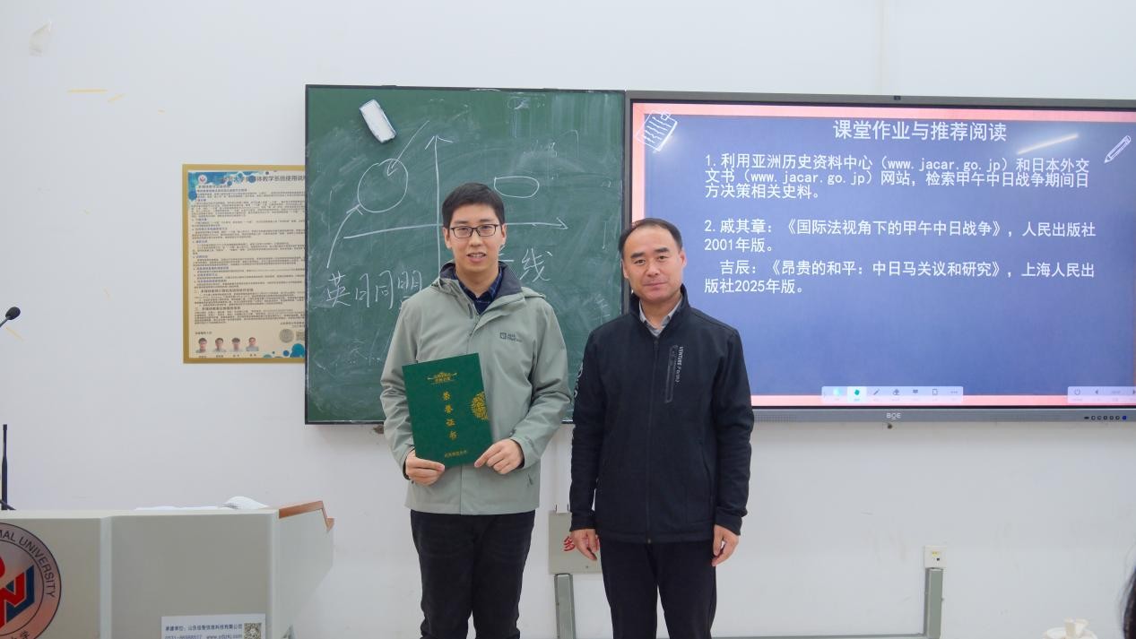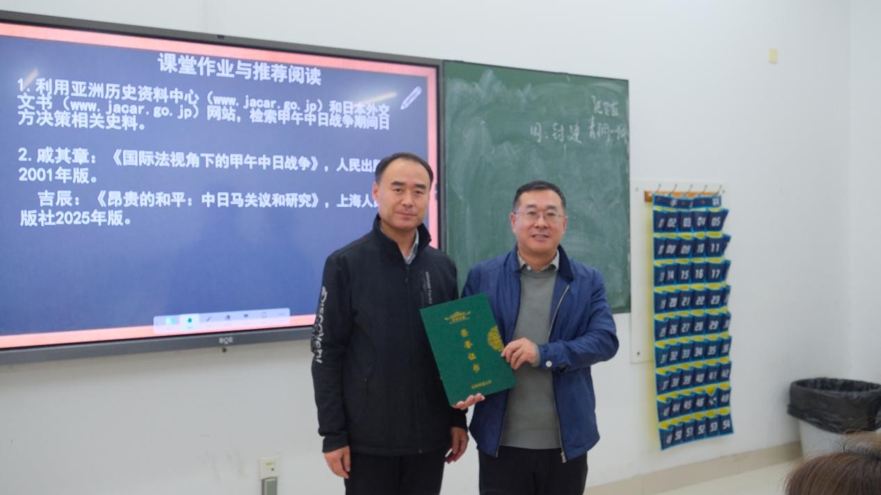 课后,中国史系主任杜学霞为陈甘霖博士及其指导教师刘志鹏教授颁发荣誉证书。