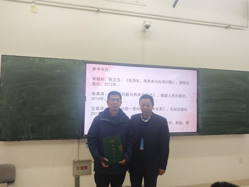 第四场公开课伊始,刘倩以视频导入课堂,通过梳理历史事实突出强调台湾自古为中国领土不可分割的一部分,随后按照时间脉络剖析台湾问题的由来、两岸关系演变,以及“一国两制”方针确立与实践过程。刘倩聚焦不同时期对台政策的演变,介绍了毛泽东、邓小平、江泽民等国家领导人为祖国统一而做出的不懈努力,阐明“一国两制、和平统一”,既是全体中国人民的共同期盼,又体现了领导人对现实国情、制度差异及国内外形势的综合考量。
