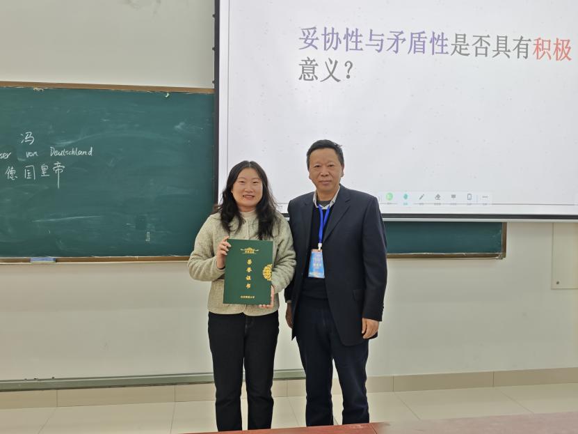 课后,楼建军和杜学霞为刘倩及其指导教师颁发荣誉证书。