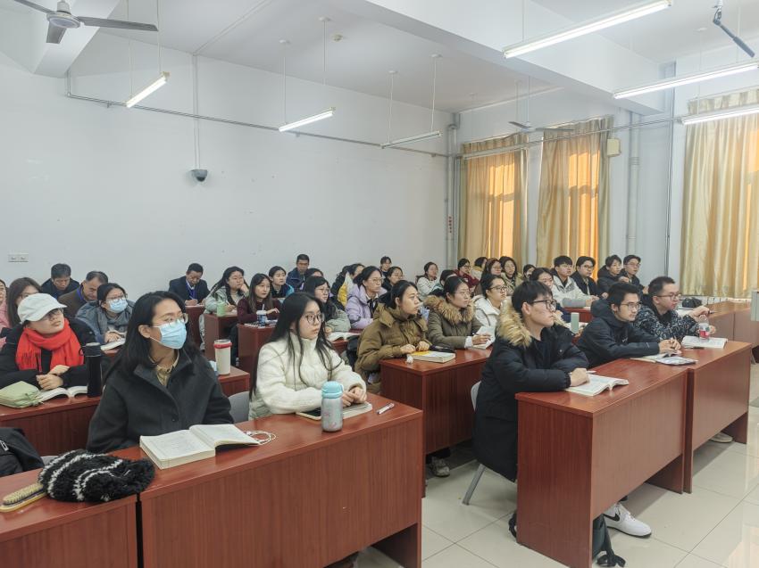 两场课堂展示结束后,教师们在417教室展开研讨交流,两位主讲老师各自对自己的课堂教学进行总结与反思。随后,指导老师、督导组及其他教师相继对授课情况进行点评:大家首先对两位老师表示充分肯定——两位老师充分使用视频、图片展示等多元授课方式与学生互动,学生课堂参与度较高,课程专业性强,授课风格亲切自然,课程核心立意表达完整且深入等。同时也提出改进建议:两位教师应继续深入挖掘课程思政元素,梳理清晰授课的层次感;注意授课细节与灵活性,合理安排教学时间;注意调节课堂气氛,调动学生学习的积极性等。参会青年教师认真聆听,积极记录,纷纷表示此次交流收获颇丰。