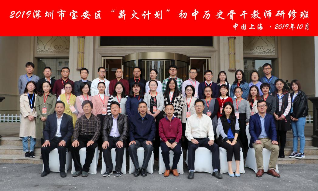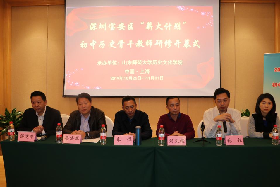 2019年10月26日下午,由山东师范大学历史文化学院主办的深圳市宝安区“薪火计划”初中历史骨干教师研修班——上海研修活动正式启动。中国教育学会历史教学专业委员会副理事长、扬州大学教授朱煜教授,深圳市宝安区教师研修学院刘文超主任,山东师范大学历史文化学院鲁法军副书记,山东师范大学历史文化学院教师教育中心主任楼建军副教授,深圳市宝安区教育科学研究院初中历史教研员林佳老师,深圳市宝安区教师研修学院邓玉清老师与来自宝安区的26余名学员参加了开幕式,开幕式由楼建军主持。