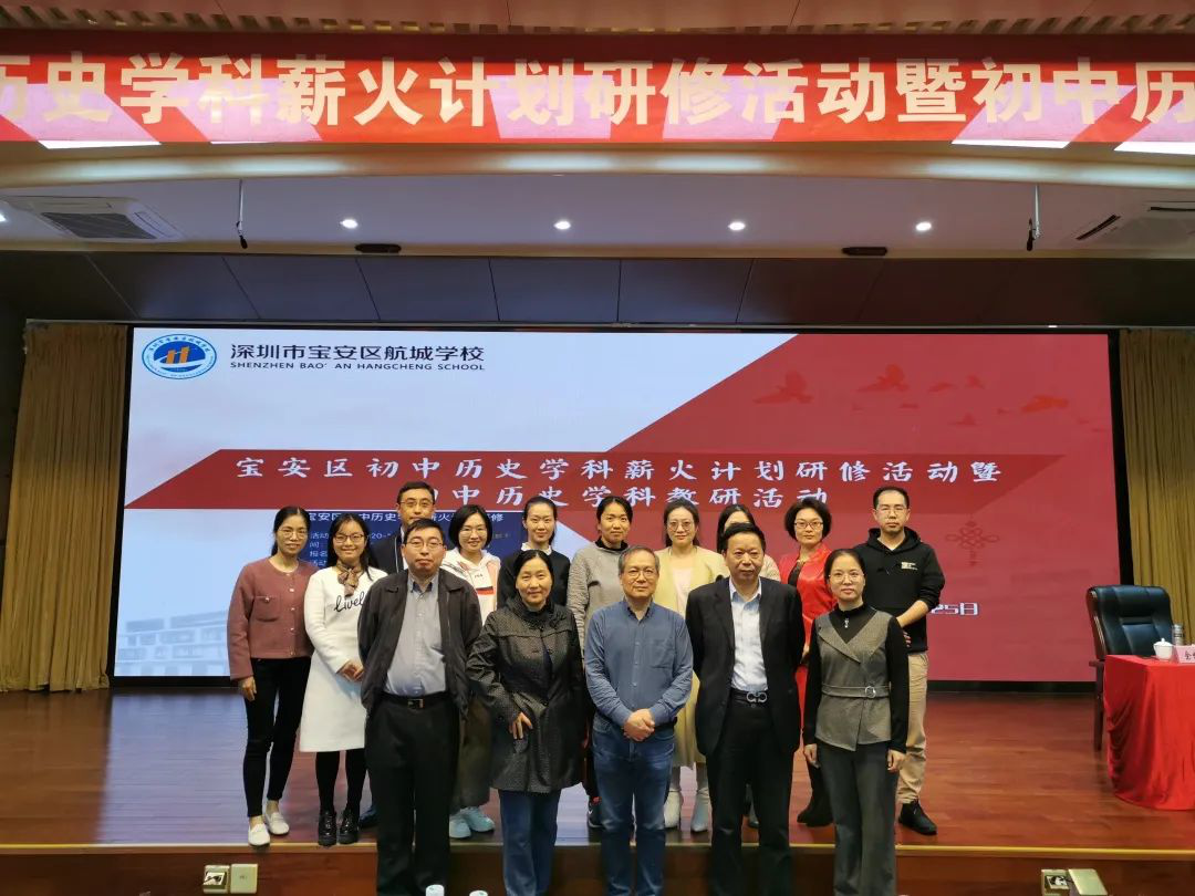 2020年12月24日至25日,宝安区初中历史学科“薪火计划”研修活动暨宝安区初中历史学科教研活动在深圳市宝安区航城学校举行。我院教师教育中心主任、硕士生导师楼建军,硕士生导师李晓华,合作硕士生导师赵然,硕士研究生导师盖志芳参加此次研修活动。