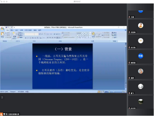毛锐教授此次讲授的课程是《世界现代史(1)》的第四章中的第三节“土耳其凯末尔革命”。首先,毛锐教授详细地梳理了土耳其凯末尔革命发生前的历史背景。通过中外历史类比的方式,他向学生指出1920年8月土耳其在协约国逼迫下签订的亡国灭种的“色佛尔条约”类似于1915年日本强迫北洋政府签订的丧权辱国的“二十一条”,加深了学生们对土耳其爆发凯末尔革命原因的理解。其次,毛锐教授讲授了土耳其凯末尔革命的具体过程与结果,指出土耳其凯末尔革命建立了其历史上从未有过的民主共和国,开创了20世纪亚非民族民主运动发展趋势的先声。他通过介绍国内学术界对凯末尔革命评价的历史沿革,向学生们指出如何客观地评价历史事件。再次,毛锐教授分析了凯末尔主义与凯末尔改革,指出了凯末尔改革的局限性与进步性。最后,毛锐教授推荐了需要学生们拓展阅读的相关文献资料,让他们能够把握学术界对土耳其凯末尔革命的学术研究动态,同时布置了需要学生课后完成的思考题。