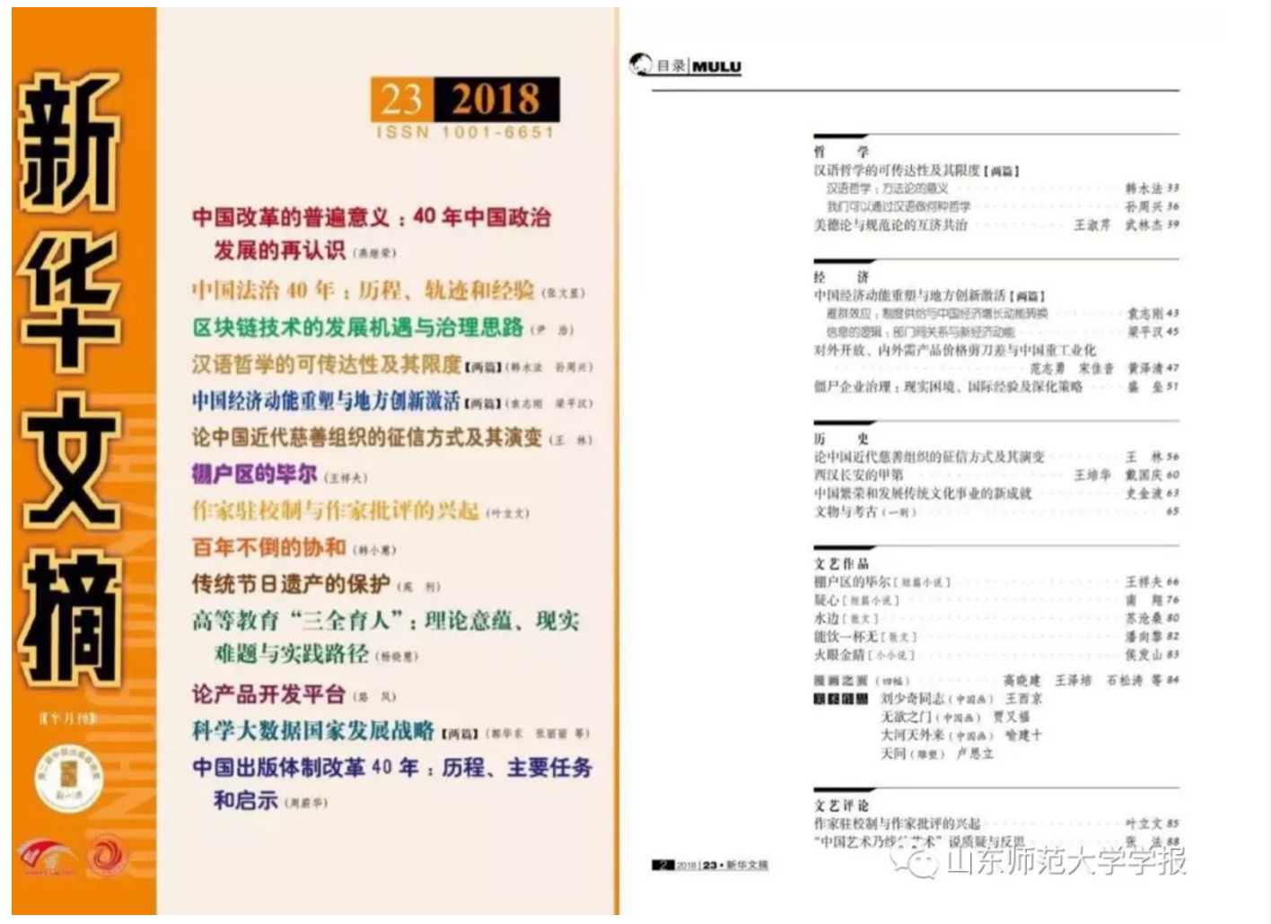 我院王林教授的《论中国近代慈善组织的征信方式及其演变》(原载于《山东师范大学学报》(人文社会科学版)2018年第4期)被《新华文摘》2018年第23期全文转载。该文是《新华文摘》封面重点论文。