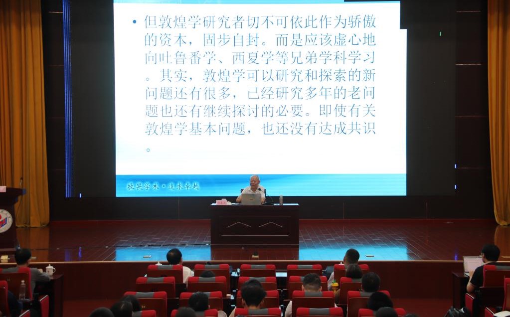 为促进学术交流,助力同学们增长见识,拓展历史思维,6月20日,由历史文化学院与社会科学处联合举办的第1411期社科大讲坛在长清湖校区树蕙堂第一报告厅开讲。本次社科大讲坛特别邀请了首都师范大学燕京人文讲席教授、中国敦煌吐鲁番学会名誉会长郝春文先生,做了题为“与敦煌有关的几个基本问题的争论”的学术报告。报告会由历史文化学院副院长燕生东教授主持。来自外校的部分教师以及学院的有关教师、200余名本、硕、博学生聆听了本次报告。
