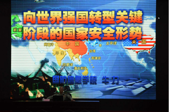 讲座伊始,牛力便提出,中国正处在向世界强国转型的关键阶段。关键阶段的具体内涵包括中国正前所未有地靠近世界舞台的中心,中国正前所未有地接近中华民族伟大复兴的目标,中国正前所未有地具有实现这个目标的能力和信息,中国正处于将强未强的阶段、综合国力与美国差距仍很大等四个方面,多方位阐述中国目前面临的机遇和挑战,提醒我们要辩证看待并保持清醒的头脑。随后,牛力阐述了中国现阶段向世界强国转型关键阶段国家安全面临的严峻挑战。他详细说明了大国崛起的三个阶段和国家在发展过程中可能面临的危险,预示中国崛起的道路可能会受到战争和内乱的破坏。同时,他指出了中国面临危险的主要根源:在国家战略上,美国把大国竞争放到第一位,把中国当作主要对手和首要安全威胁;在军事上,一些国家强化军力配置,全力打造围堵中国的战略包围圈;在同盟关系上,美国紧拉日印澳,企图以“印太战略”遏制中国;在海洋方向上,美国激化中国与周边国家领土主权和海洋权益争端,使我国来自海洋方向的威胁加剧;在台湾问题上,美国加大打“台湾牌”的力度,台湾独立的危险性加剧;在经济和社会领域,美国将利用多种手段,干扰和破坏中国发展和稳定。接下来,牛力针对当前国内外新形势下我国的发展进行了战略性分析:以总体国家安全观为指导,构建国家安全体系;坚持以经济建设为中心,强化国家安全的实力基础;坚持以法治国,把反腐正风与改善民生有机结合,确保社会稳定;锻造国魂,凝聚和弘扬伟大的中国精神;贯彻习近平强军思想,全面建设世界一流军队等强军战略。牛力在讲座中还明确了习近平强军战略的基本目标,深度剖析了全面建设世界一流军队的要求,扎实推进世界一流军队建设。最后,牛力教导同学们要站得高、看得远、想得深、谋得全,要敢于斗争、敢于胜利,将国家和军队建设得更加强大,实现中华民族伟大复兴的中国梦。在点评环节,陈海宏教授肯定了牛力教授生动精辟的演讲,并鼓励同学们学好历史,为实现强国梦打下坚实基础。