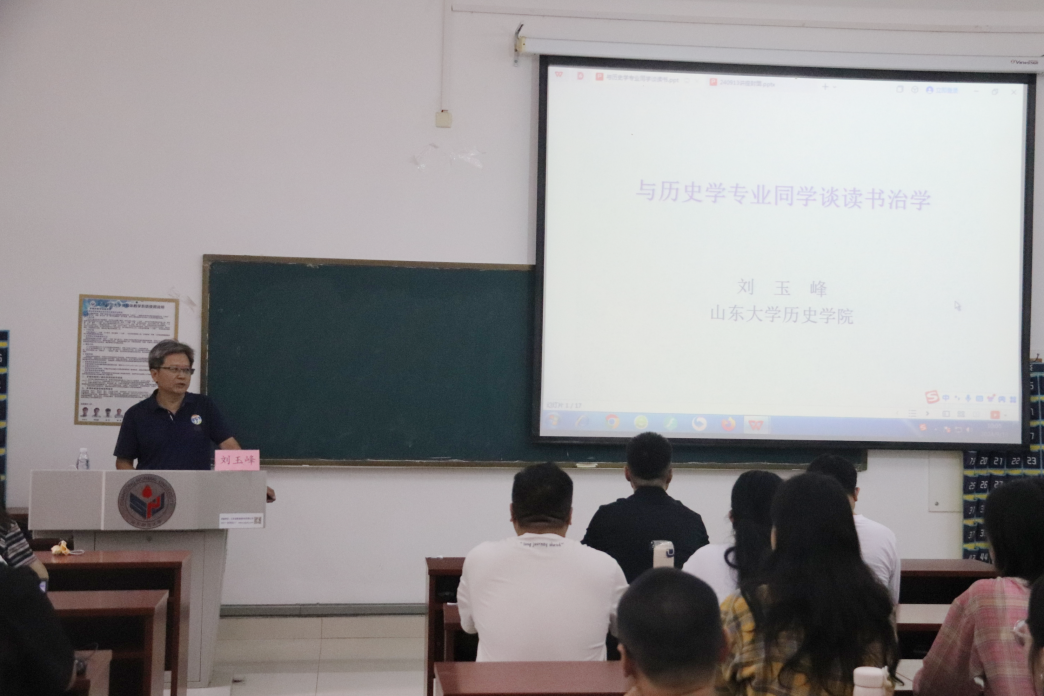 为帮助同学们拓宽学术视野,9月13日上午由历史文化学院、社会科学处联合举办的第1420期社科大讲坛于长清湖校区崇德楼116教室开讲。本次社科大讲坛特邀山东大学历史学院教授、博士生导师刘玉峰先生做了题为“与历史学专业同学谈读书”的学术报告。学院周尚兵教授以及有关博士、硕士研究生、本科生等120余人参与了聆听。报告会由学院教授、博士生导师杜立晖先生主持。