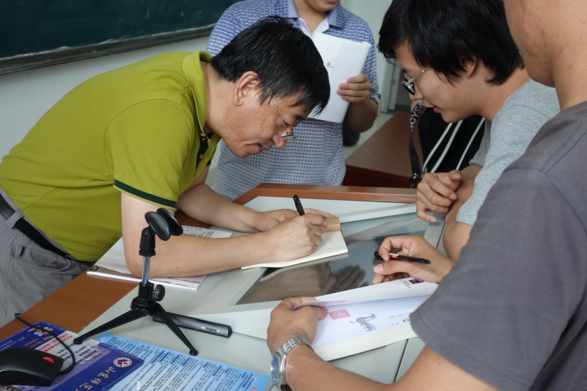 图为张帆为学院学生签名