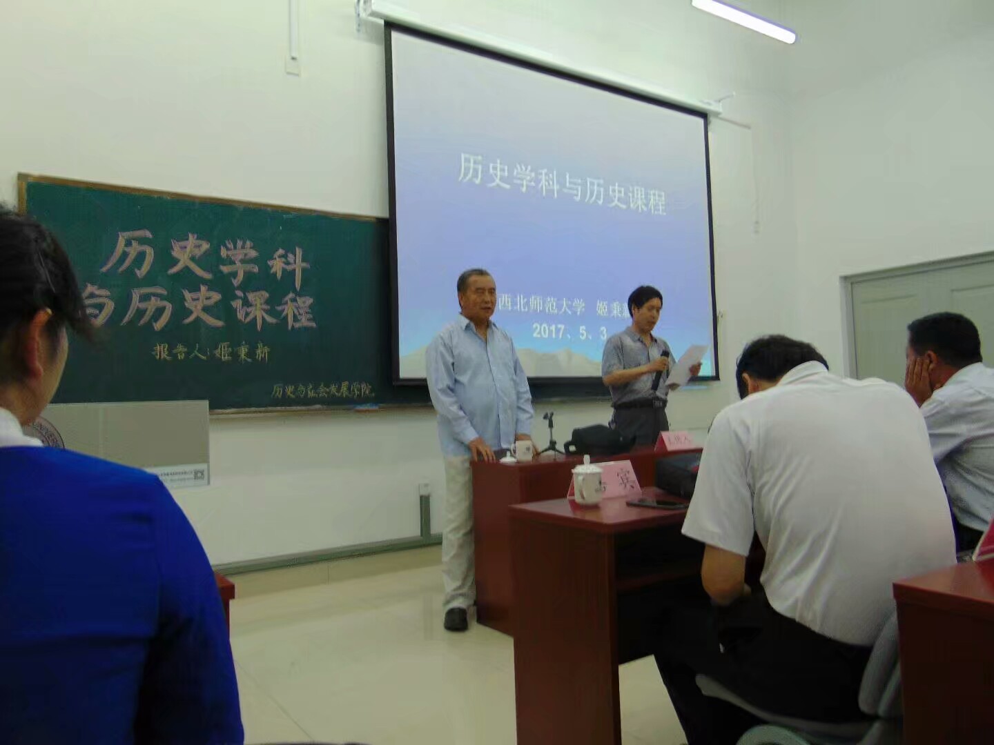 为帮助同学们进一步了解历史学科,提高同学们关于历史课程的教学学习能力,5月11日,历史与社会发展学院于长清湖校区历社学院楼116教室举办历史学科与历史课程学术讲座。本次讲座由历社学院副院长赵文亮主持,全国著名历史教育改革专家、西北师范大学教育学院教授姬秉新受邀担任主讲人。近百名同学聆听了此次讲座。