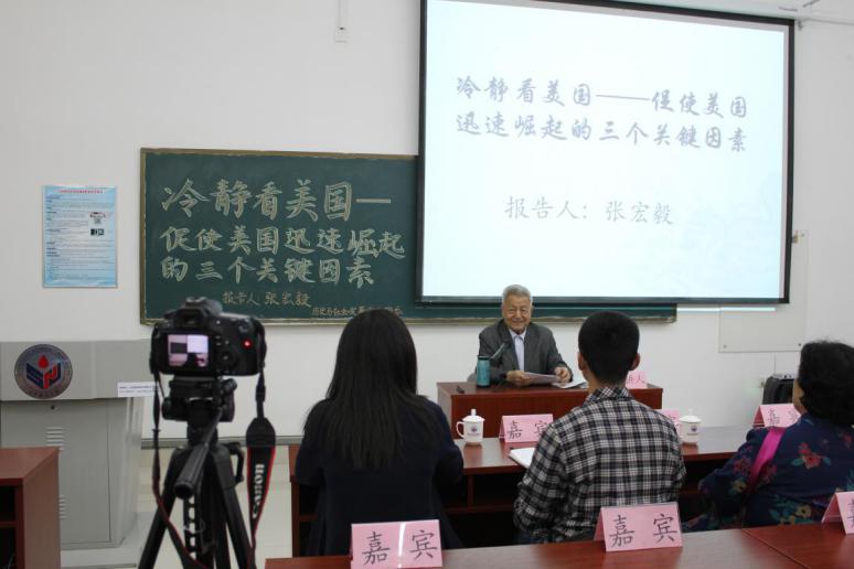 4月17日晚,张宏毅教授在长清湖校区历社学院楼116教室作了题为“冷静看美国:促使美国迅速崛起的三个关键因素”的第一场讲座。张宏毅教授以美国的基本情况为切入点,运用唯物辩证法分析美国的历史。他指出,美国的历史虽短,但发展速度飞快;国民生产总值在120年间始终领先世界,却又欠下了很多外债。接着,张宏毅系统地概括了促使美国迅速崛起的三个关键因素,包括得天独厚的自然地理条件,美利坚民族的变通性创新性以及美国外交政策的扩张性,并逐条展开了详细分析。他指出,美国地理位置优越、自然资源丰富;美利坚民族具有创新精神、独立精神、个人主义与反抗精神,同时他们善于经商、重视交流、重视教育和人才,思想体系不会僵化成教条,形成了宏观调控意识,为资本主义开辟了道路,促进了国家和社会的发展。而谈及美国崛起的“扩张性”,张宏毅教授指出,美国利用美元扩张经济,利用冷战壮大国力,常常打着“反恐、人权、价值观”等幌子来干涉他国内政,才能在短时间中迅速崛起,成为资本主义头号强国。最后,张宏毅教授从自然条件、创新能力、政治与创新活力、社会公平、短期主义五个方面描述了美国的未来走向。张宏毅还就如何把握中美关系以实现双赢提出了自己的看法。他认为,美国国内长期的实用主义传统使得中美之间的密切合作具有可行性。这从特朗普总统在上台这几个月来政策的一些转变中可以表现出来。中美关系是国际最重要的关系之一,处理好中美关系对全球各国都有利益。中美双方应清醒理智的分析问题、找寻共同利益所在、灵活处理问题,共同进步,尽量避免战争。