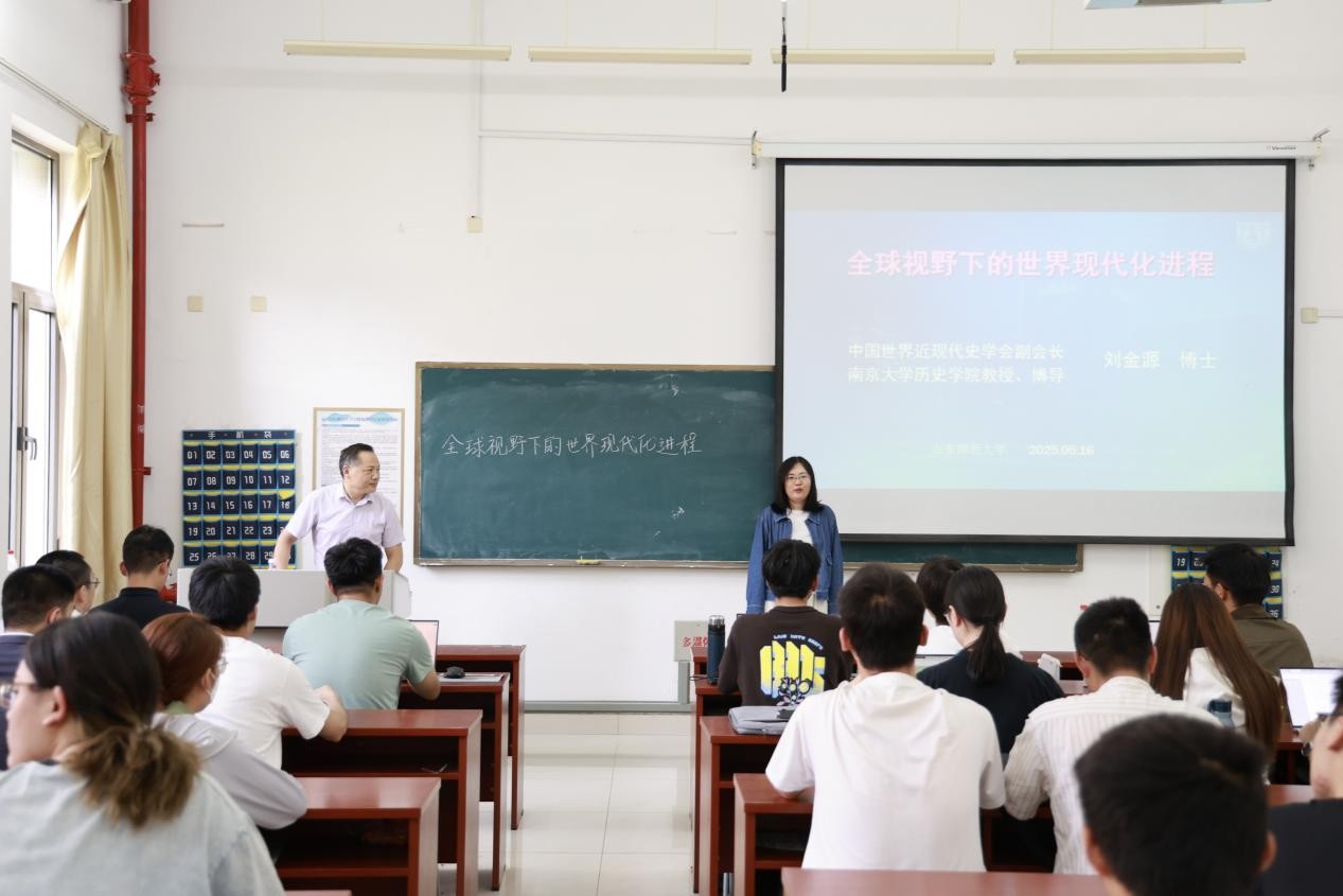 5月16日下午,历史文化学院在崇德楼107教室举办“全球视野下的世界现代化进程”主题学术讲座。本次活动由历史文化学院与社会科学处联合主办,特邀南京大学历史学院教授、博士生导师刘金源教授担任主讲嘉宾。