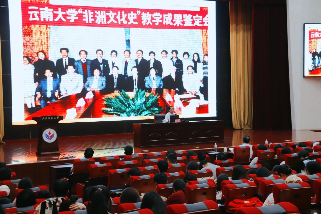 讲座伊始,刘鸿武教授从“读万卷书,行万里路”切入,引出如何在行走世界过程中做利国利民利天下的创新学问这一重要议题。随后,刘教授结合自己的非洲研究学术经历,深刻指出了跨文化交流与合作的当代价值及其重要性。刘教授指出,在非洲从事学术调研期间,通过对当地历史文化和社会发展现状的系统考察,深刻领悟了不同文明相互借鉴、彼此融合的重要意义和价值,也充分认识到了学者所肩负的解决经济社会发展实际问题、为增进国际理解与合作贡献学术智慧的重大使命。刘教授聚焦中非合作这一现实议题,具体提出了增进相互理解与合作、构建平等共赢国际合作模式的解决方案,强调中非合作不仅要体现在经济上互利共赢,还应体现于文化上交流互鉴。中非双方要共同努力增进互信与友谊,通过教育、科技、文化等各领域的密切交流与合作,为构建心灵相通、扎实稳定的中非崭新关系奠定坚实的基础。