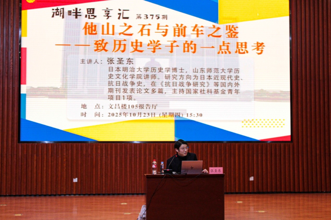 为帮助新生明晰专业学习方向,深入理解历史研究的核心价值与应用方法,10月23日下午,历史文化学院于文昌楼105报告厅成功举办“他山之石与前车之鉴——致历史学子的一点思考”主题讲座。本次讲座由学院讲师张圣东主讲,辅导员童子豪主持,2025级新生到场聆听。