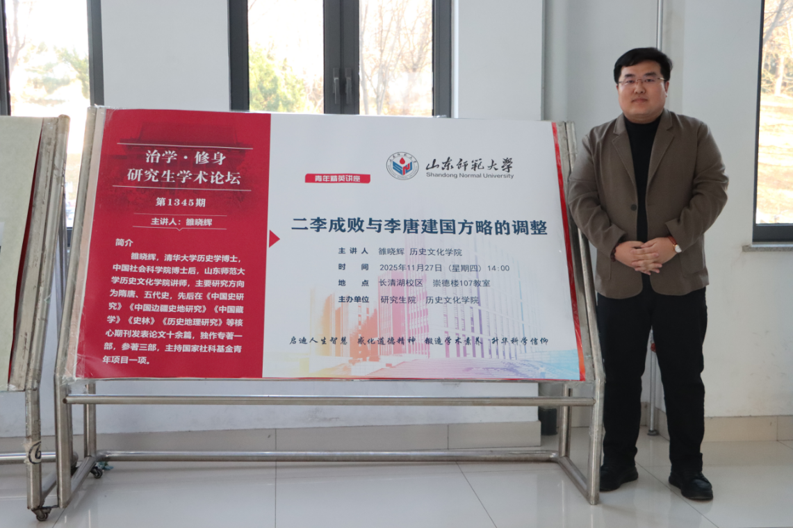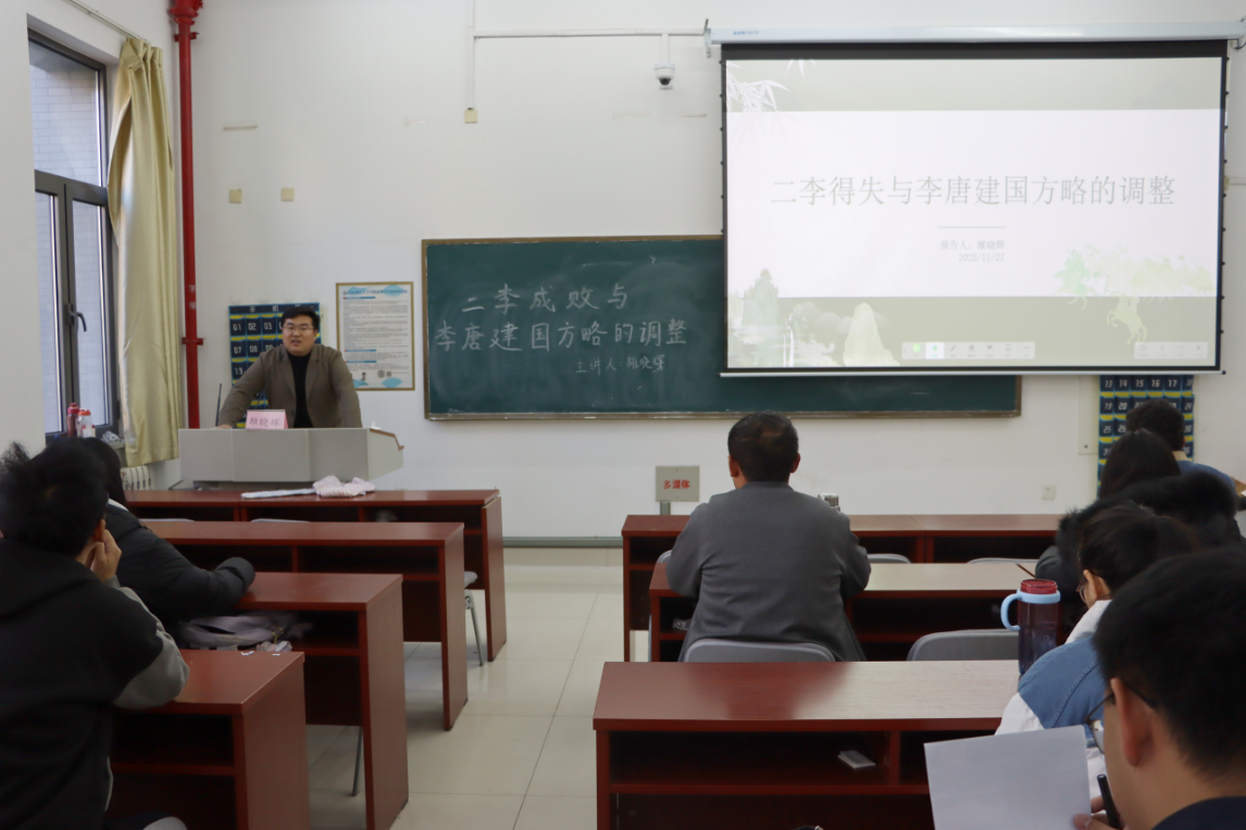 为深化我院研究生对古代政治变迁的理解,11月27日下午,由研究生院、历史文化学院联合举办的以“二李成败与李唐建国方略的调整”为主题的讲座在长清湖校区崇德楼107教室成功开讲。本次讲座邀请到清华大学历史学博士、中国社会科学院博士后雒晓辉老师担任主讲,讲座吸引了众多研究生参与,现场气氛热烈。