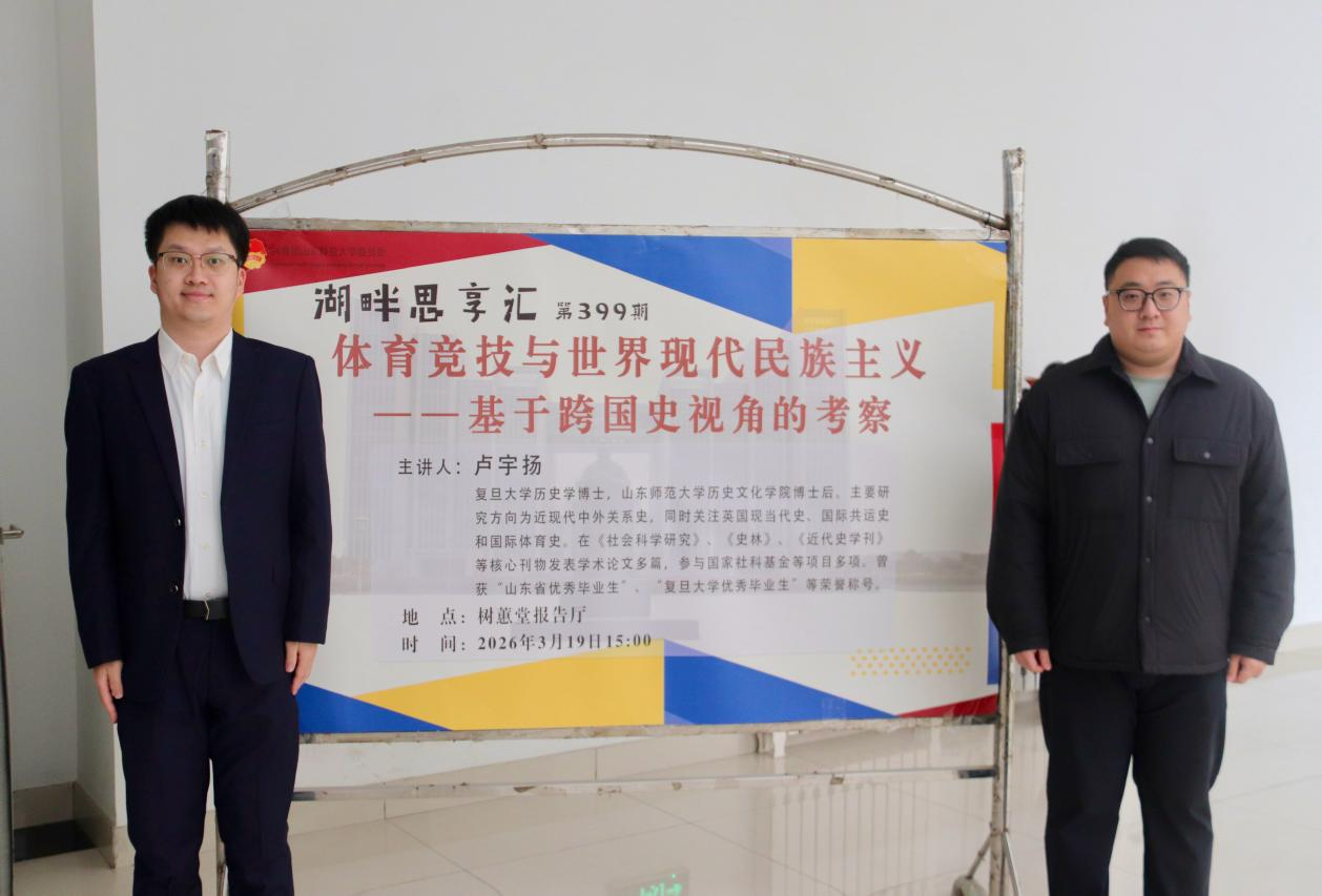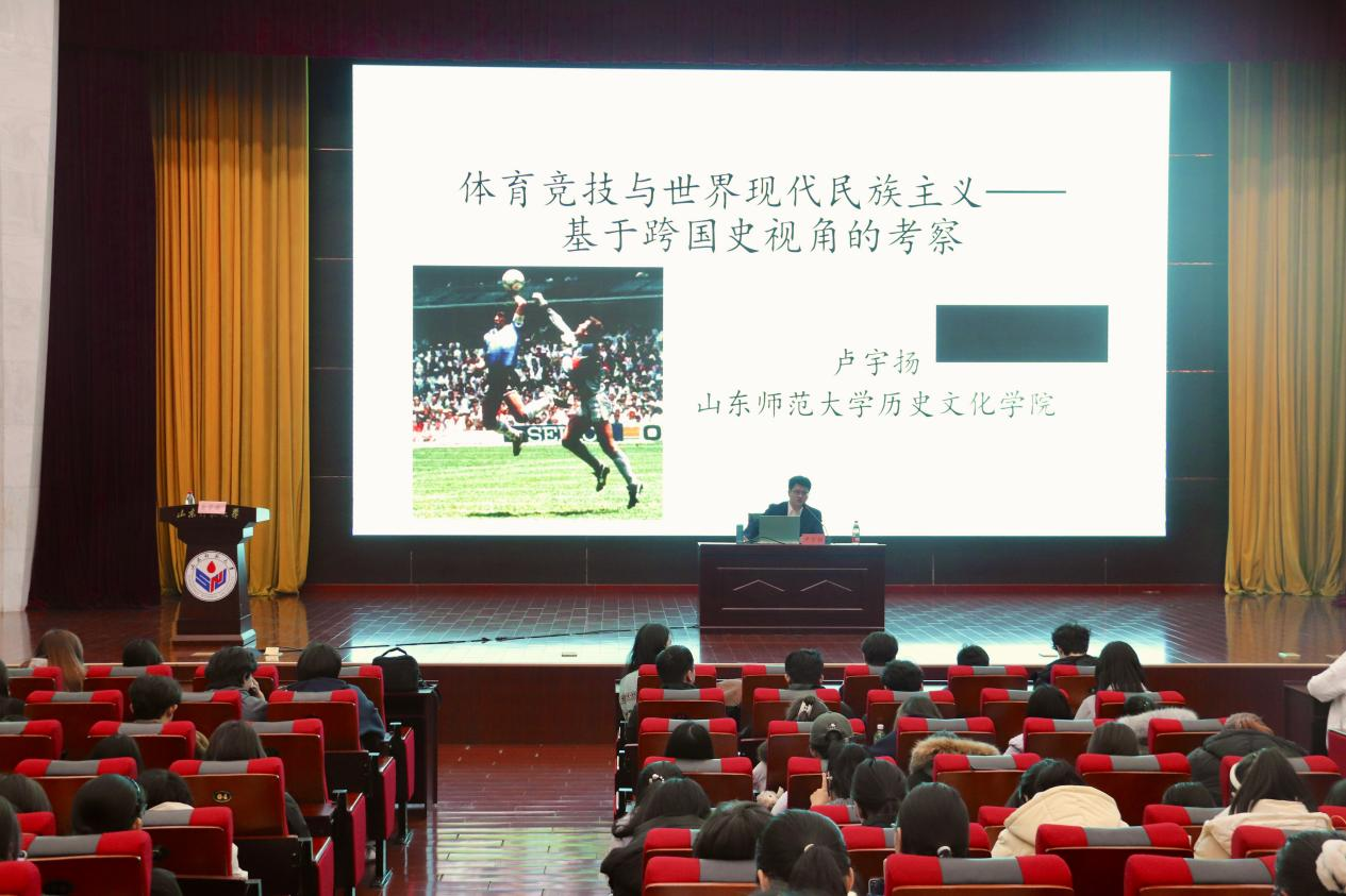 为开拓学生研究视角,丰富学习经验,3月19日下午,历史文化学院于树蕙堂报告厅成功举办“体育竞技与世界现代民族主义——基于跨国史视角的考察”主题讲座。本次讲座由学院青年教师卢宇扬主讲,辅导员童子豪主持,2025级学生到场聆听。