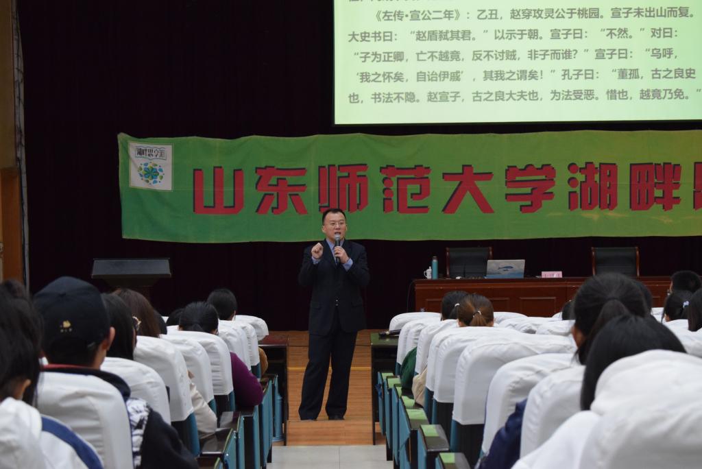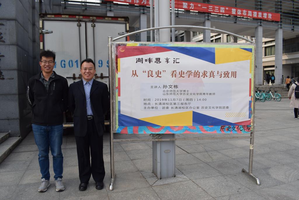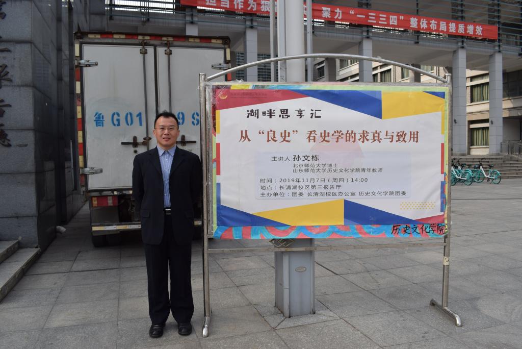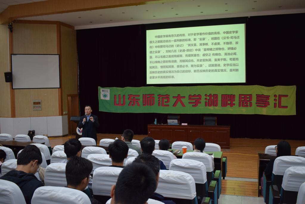 11月7日,由校团委、历史文化学院团委联合举办的“湖畔思享汇”主题学术讲座于长清湖校区第三报告厅开讲。山东师范大学历史文化学院青年教师、北京师范大学博士孙文栋以“从‘良史’看史学的求真与致用”为主题与历史文化学院2018级全体同学分享了学习史学的心得体会。