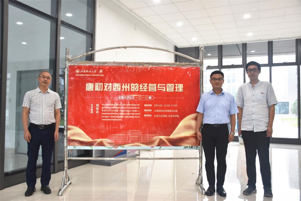 本次社科大讲坛特邀中国唐史学会副会长、常务理事,中国敦煌吐鲁番学会常务理事,中国魏晋南北朝史学会理事, 国家社科基金重大招标项目首席专家,湖北省历史学会副会长,武汉大学历史学院院长、教授、博士生导师刘安志教授担任主讲人,做主题为“唐初对西州的经营和管理”的学术报告。报告会由山东师范大学历史文化学院副院长、硕士生导师赵树国副教授主持,学院青年教师尹承和历史文化学院部分同学共同聆听了此次讲座。