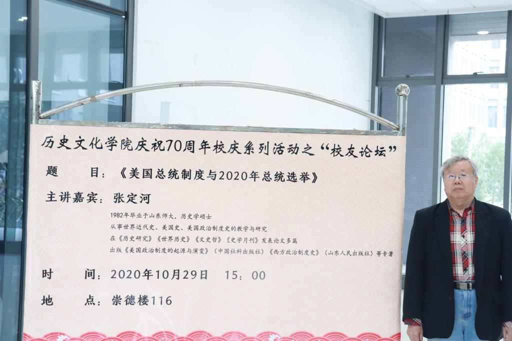 为让学生们更好地了解美国历史及其相关政治制度,10月29日下午,山东师范大学历史文化学院于长清湖校区崇德楼116教室举办题为“美国总统制度与2020年总统选举”的讲座。本次讲座由山东师大老校友、历史学硕士张定河主讲,我院部分学生参加。