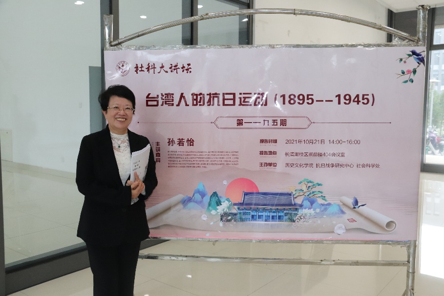 10月21日下午,历史文化学院于山东师范大学长清湖校区崇德楼404会议室成功举办题为“台湾人的抗日运动(1895-1945)”的讲座,台湾稻江科技暨管理学院校长孙若怡教授担任主讲人。山东师范大学抗日战争研究中心刘志鹏教授、中国现代史教研室主任杜学霞副教授、青年教师黄润青博士、青年教师冯秀香博士,以及世界现代史教研室主任刘昌鑫老师、青年教师李敏博士等出席本次讲座。本次讲座由刘志鹏主持,学院部分本科生、研究生及博士生参加了讲座。