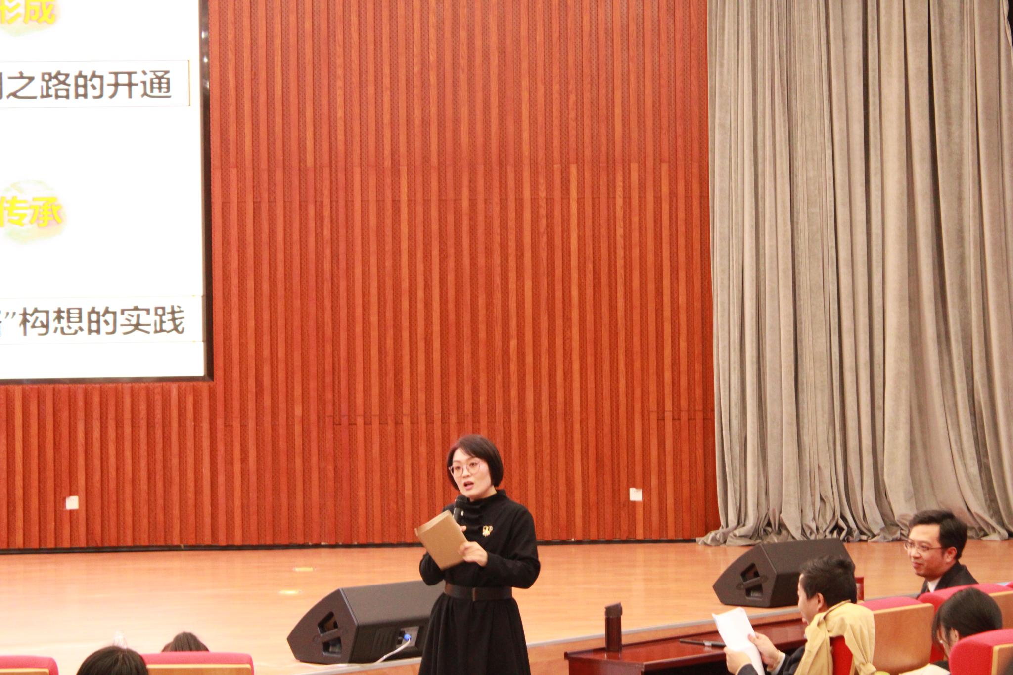 随后,在场嘉宾对黄波的教学展示表达充分赞赏并给予中肯的建议。首先,阎静表示,从黄波的课堂中感受到历史课实现育人目的的重要性,并表示对开头视频的音乐和画面渲染的西域大漠氛围以及丝绸之路和“一带一路”体现的贯穿两千年的历史魅力印象深刻。紧接着,楼建军对黄波精妙的教学设计表达充分的肯定,又指出在教学设计中,教学目标不必呈现给学生,教师做到心中有数即可。同学们对黄波的精彩展示及在场嘉宾的点评致以热烈掌声。