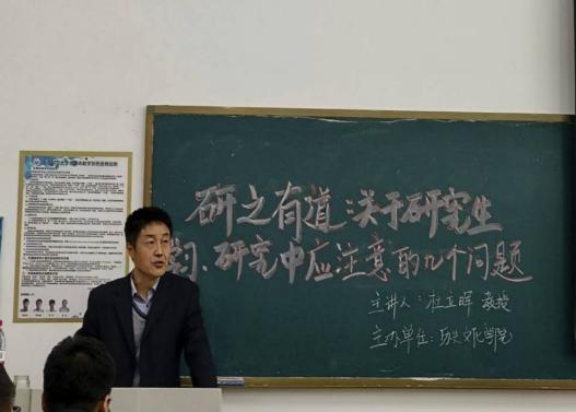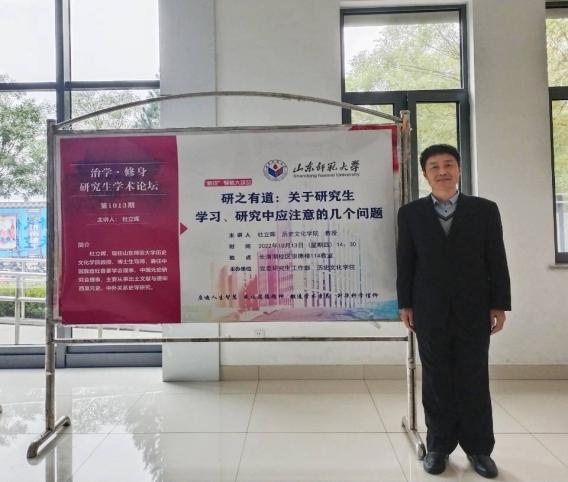 10月13日下午,由山东师范大学党委研究生工作部和历史文化学院联合主办的研究生“治学·修身”学术论坛在长清湖校区崇德楼114教室成功举行,历史文化学院教授、博士生导师杜立晖作了以“研之有道:关于研究生学习、研究中应注意的几个问题”为主题的讲座。学生工作办公室主任、团委书记魏宁主持此次活动,学院各级研究生参与其中。