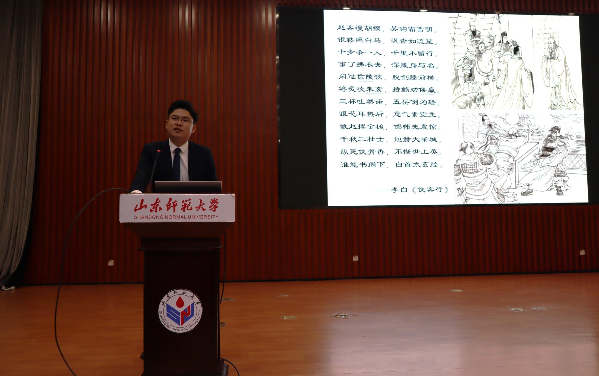 10月20日下午,山东师范大学长清湖校区历史文化学院于文昌楼105报告厅举办题为“侠客之行——游侠与古代社会”的讲座。本次讲座由山东师范大学历史文化学院讲师宋化玉担任主讲人,我院2022级全体学生参加此次讲座。