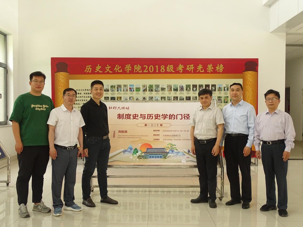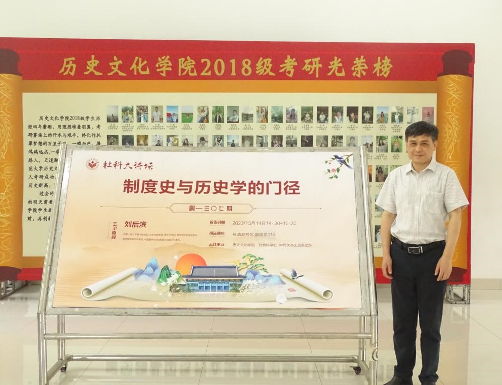 为帮助同学们拓宽学术视野,5月14日下午14:00,由山东师范大学历史文化学院、社会科学处、中外关系史创新团队举办的第1307期社科大讲坛于长清湖校区崇德楼116教室开讲。本次社科大讲坛特邀中国人民大学教授刘后滨担任主讲嘉宾,进行了以“制度史与历史学门径”为主题的学术讲座,历史文化学院杜立晖教授、周尚兵教授、陈艳玲副教授、尹承副教授以及青年博士教师闫福新、宋化玉和部分本科生、研究生共同参加,由院长助理兼系主任刘志鹏教授主持。