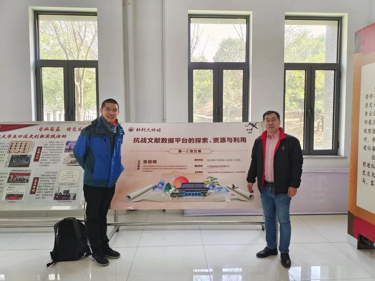 为加强校内外学术交流,拓宽学术视野,11月9日下午14:00,历史文化学院、抗日战争研究中心、社会科学处联合举办了“抗战文献数据平台的探索、资源与利用”学术讲座。本次讲座特邀中国人民大学历史学院讲师、中国人民大学数字人文研究院研究员张燚明老师作主题报告。学院黄润青老师、本科生以及研究生四十余人参加,山东师范大学抗日战争研究中心主任刘志鹏教授主持。