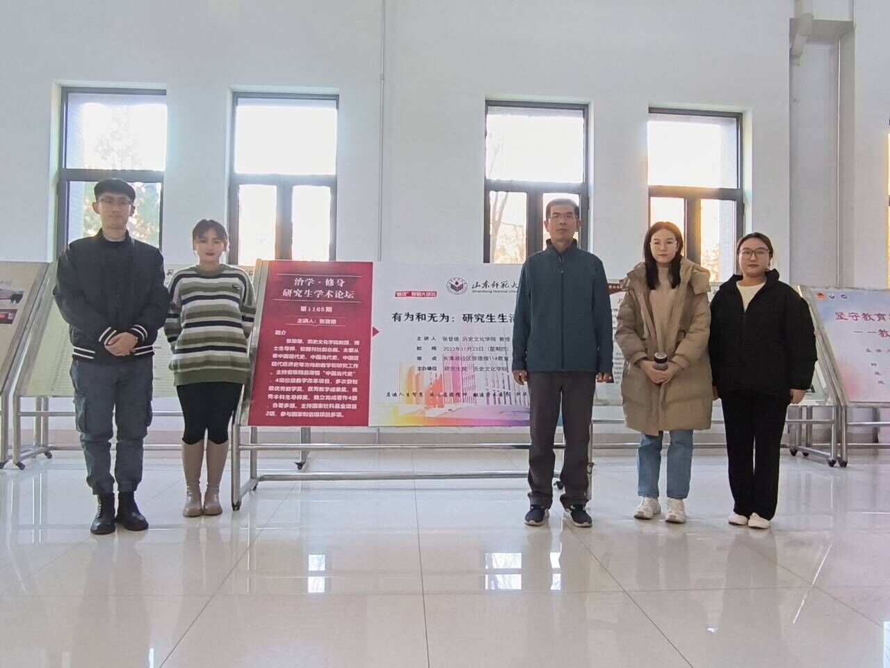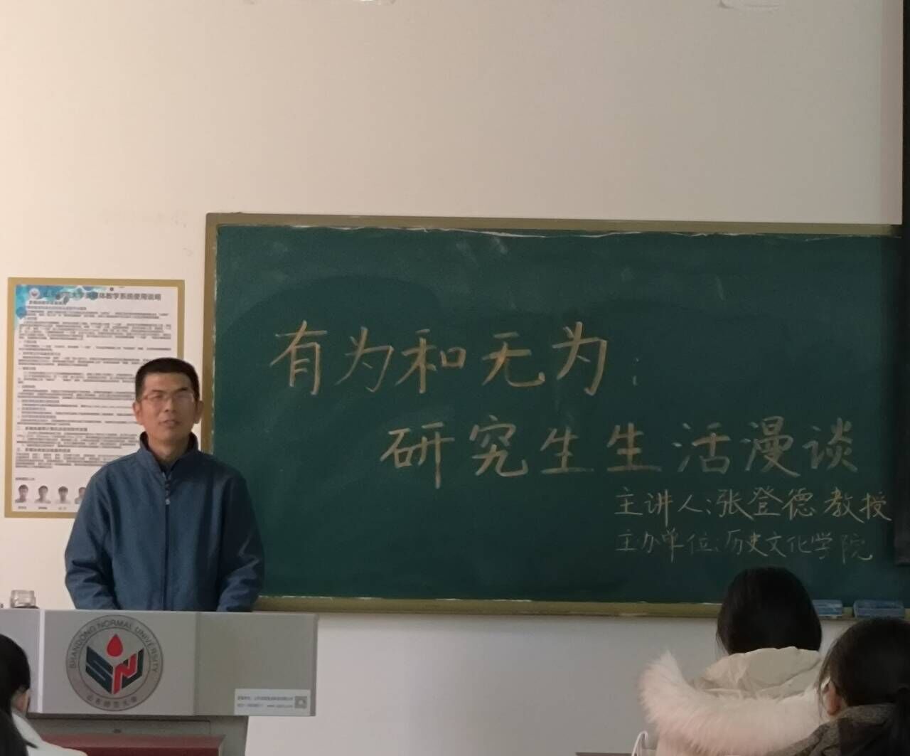 11月23日下午,历史文化学院在长清湖校区崇德楼114教室举行“治学·修身”研究生学术论坛,此次论坛由山东师范大学期刊社副总编辑张登德担任主讲人,作了主题为“有为和无为:研究生生活漫谈”的讲座,学院研究生到场聆听。