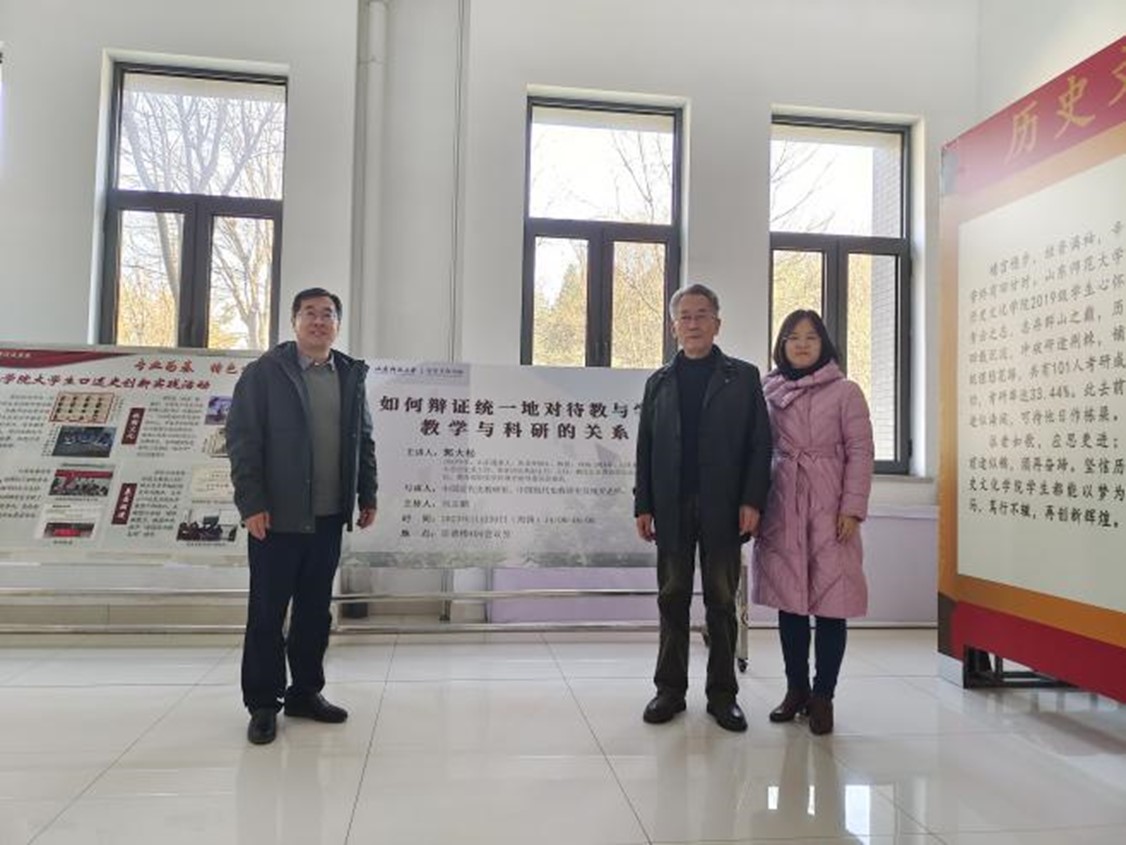2023年11月30日下午,由历史文化学院举办的崇德讲堂在崇德楼404会议室举行。本次崇德讲堂特邀山东师范大学原历史系主任郭大松教授担任主讲嘉宾,作主题为“如何讲好中国近代史”的学术报告。本次讲座由历史文化学院分管教学院长助理刘志鹏教授主持,学院王林教授、李伟教授、刘本森教授、魏永生副教授、杜学霞副教授、盖志芳副教授、王德硕副教授和孟祥菊博士、冯秀香博士、黄润青博士、赵北平博士、高志伟博士、祝介梅博士等青年老师以及本科生、研究生共四十余人参加。