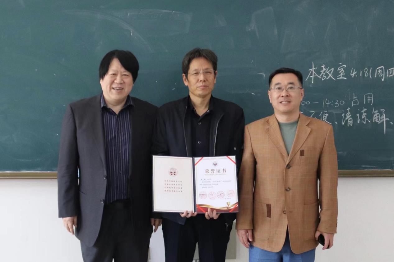 王林教授旁征博引,通过课堂互动,积极引导学生从丰富的史料中思考感悟,受到在场教师与同学的一致好评。观摩课结束后,刘志鹏教授、李伟教授为王林教授颁发荣誉证书。