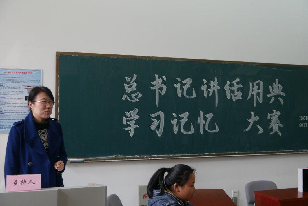 针对总书记系列讲话中引用的典故、古文、俗语,2016级历史学类1班团支部组织同学们专门学习。为了进一步检验对总书记系列讲话的学习效果,特举办本次比赛。比赛总体分为三个部分,分别是“想咋背咋背”、“拼了命也要抢答”和“向修身看齐”。在比赛的过程中,参赛选手们迸发激情与智慧,展开激烈的争夺战,最终角逐出了冠、亚、季军,以及其它四个奖项。观众同学也在观看的过程中,学习到了总书记讲话用典的内容以及深意。同时,比赛大大增强了团支部的凝聚力,班级团员的精神风貌得到了大幅度提高,团员们对于“一学一做”活动也有了更加深入的了解。