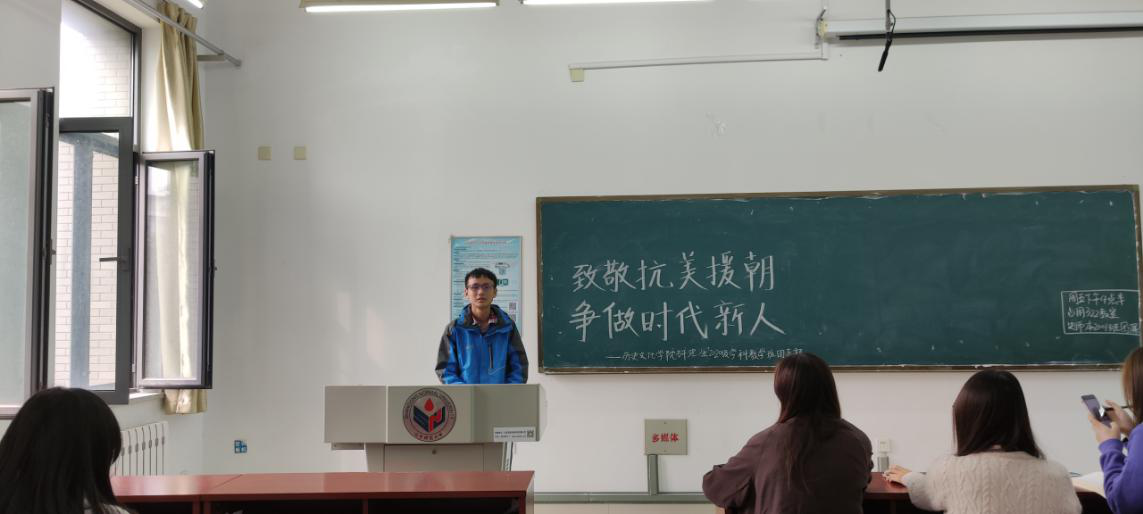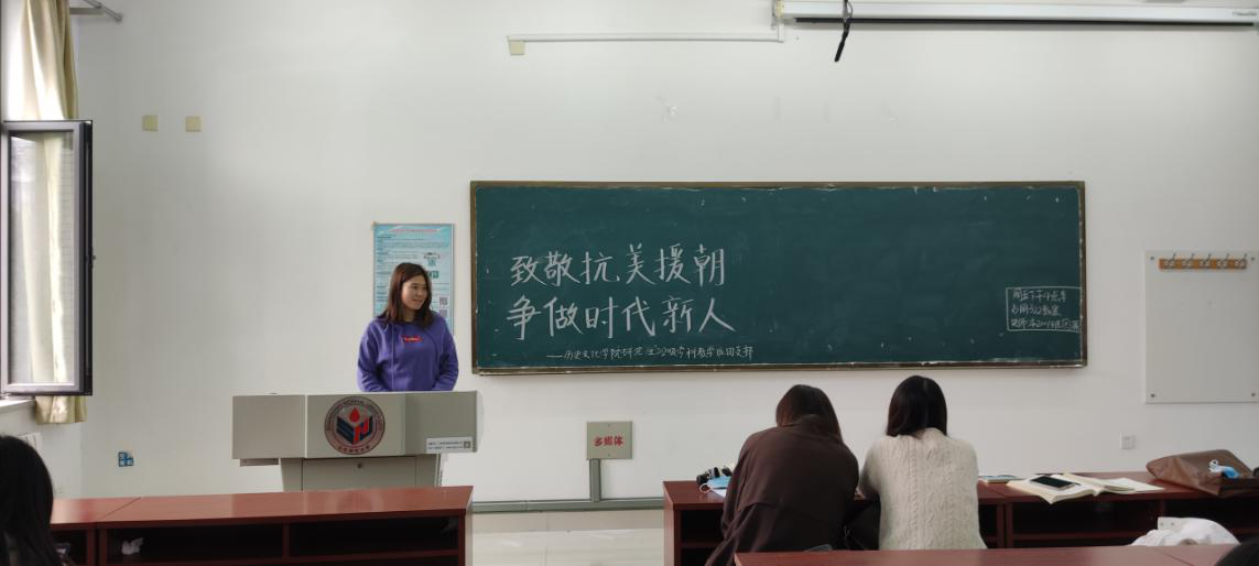 因此,为纪念这次伟大正义之战,历史文化学院研究生2020级学科教学班团支部于崇德楼322教室举行了“致敬抗美援朝,争做时代新人。”主题团日活动。以铭记每一位牺牲在朝鲜战场的中国志愿军烈士。
