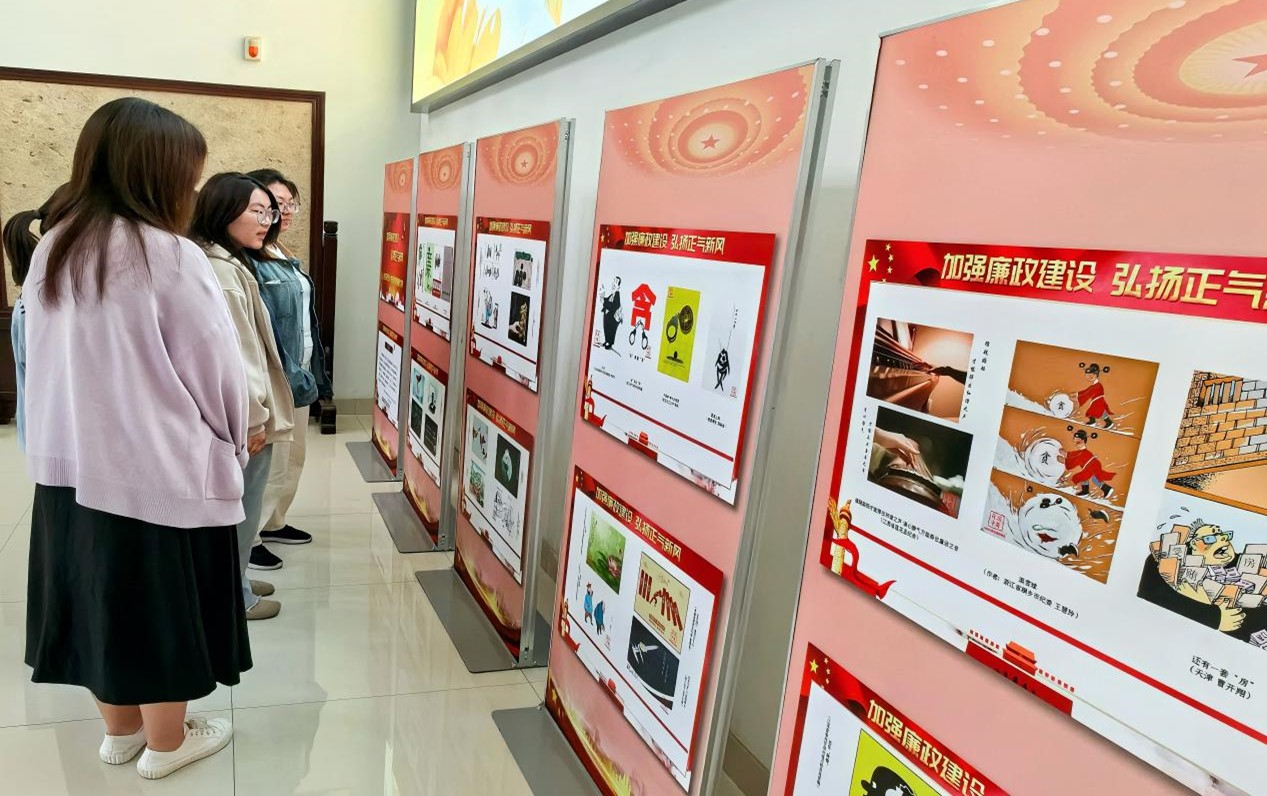为加强廉政文化建设,树立以清正廉洁为荣、以贪污腐败为耻的意识,筑牢拒腐防变的道德底线,近期,历史文化学院在崇德楼举办“加强廉政建设,弘扬正气新风”反腐倡廉图片展。