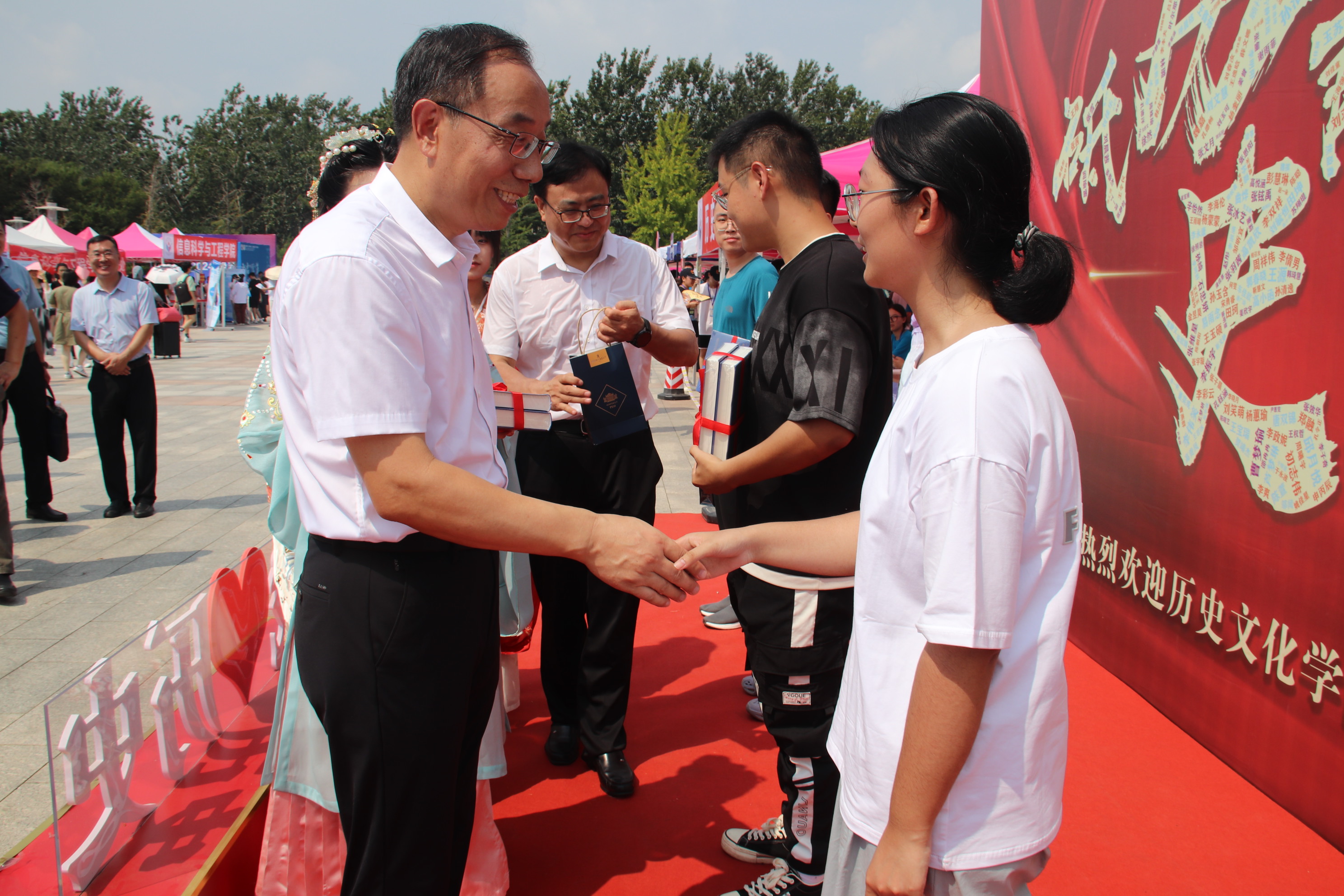 9月1日,历史文化学院于长清湖校区开展2024年迎新工作。校党委书记冯继康、校长张建等学校领导及有关部门负责同志来到学院迎新现场,对学院迎新工作进行检查指导,向新生及家长致以诚挚的问候和热烈的欢迎,同新生代表亲切交谈并向其赠送了《安作璋先生纪念文集》与《刘祚昌先生百年诞辰纪念文集》史学书籍,勉励2024级新同学在前辈风姿的浸润下坚定方向,扬帆起航。学院领导认真检查并落实迎新工作各个环节,深入学生宿舍和迎新现场,了解新生报到的相关情况,确保迎新工作有序进行。