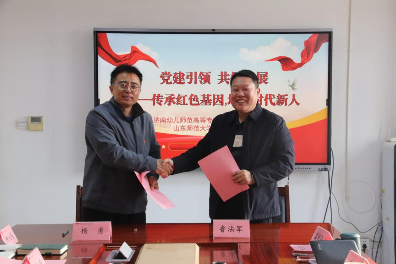 活动中,双方共同参观了学前教育学院党建文化长廊,就学院概况、工作理念等方面展开交流,针对党建工作中的创新举措和共性问题进行了深入探讨。双方领导共同签署党建共建协议,展望未来党建共建工作的美好愿景。该协议的签订标志着我院与济南幼儿师范高等专科学校学前教育学院正式确立党建共建关系,双方将在党建工作的广阔天地中携手共进、砥砺前行。