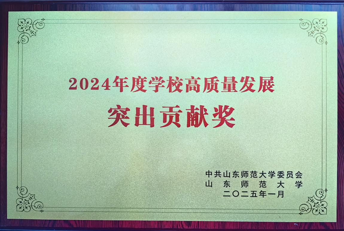 近日,山东师范大学2024年度高质量发展总结表彰大会在千佛山校区大礼堂隆重举行。学院荣获学校2024年高质量发展突出贡献奖。