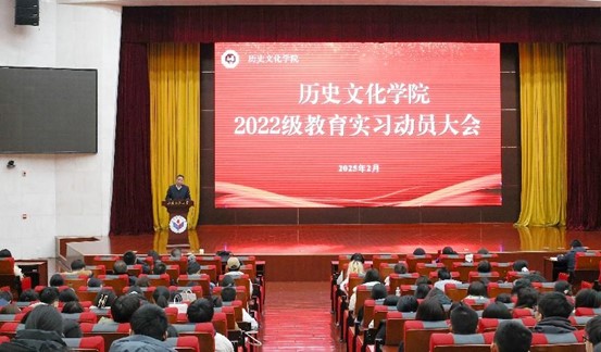 2月17日下午,历史文化学院于长清湖校区树蕙堂第一报告厅成功举办2022级教育实习动员大会。学院党委副书记、纪委书记鲁法军,教师教育中心主任楼建军,中国史系主任杜学霞,学生工作办公室主任、团委书记董欣,全体实习指导教师、辅导员出席会议。会议由董欣主持。