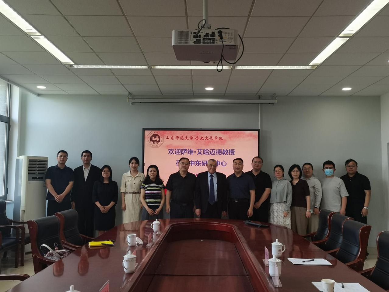 5月20日上午,埃及本哈大学哲学、阿拉伯语及中国文化研究专家萨维·艾哈迈德教授来到山东师范大学中东研究中心,与校内外专家学者开展学术座谈。我校国际交流与合作处副处长张鸥、范峻玮,历史文化学院党委书记刘新生、院长兼中东研究中心主任毛锐,外国语学院阿拉伯语系主任、中东研究中心研究员马保全,阿拉伯语系教师许妍琳、田思雨,以及中东研究中心和世界史系教师代表赵北平、赵卓然、张凯成、朱晓、李敏、陈锐等出席活动。