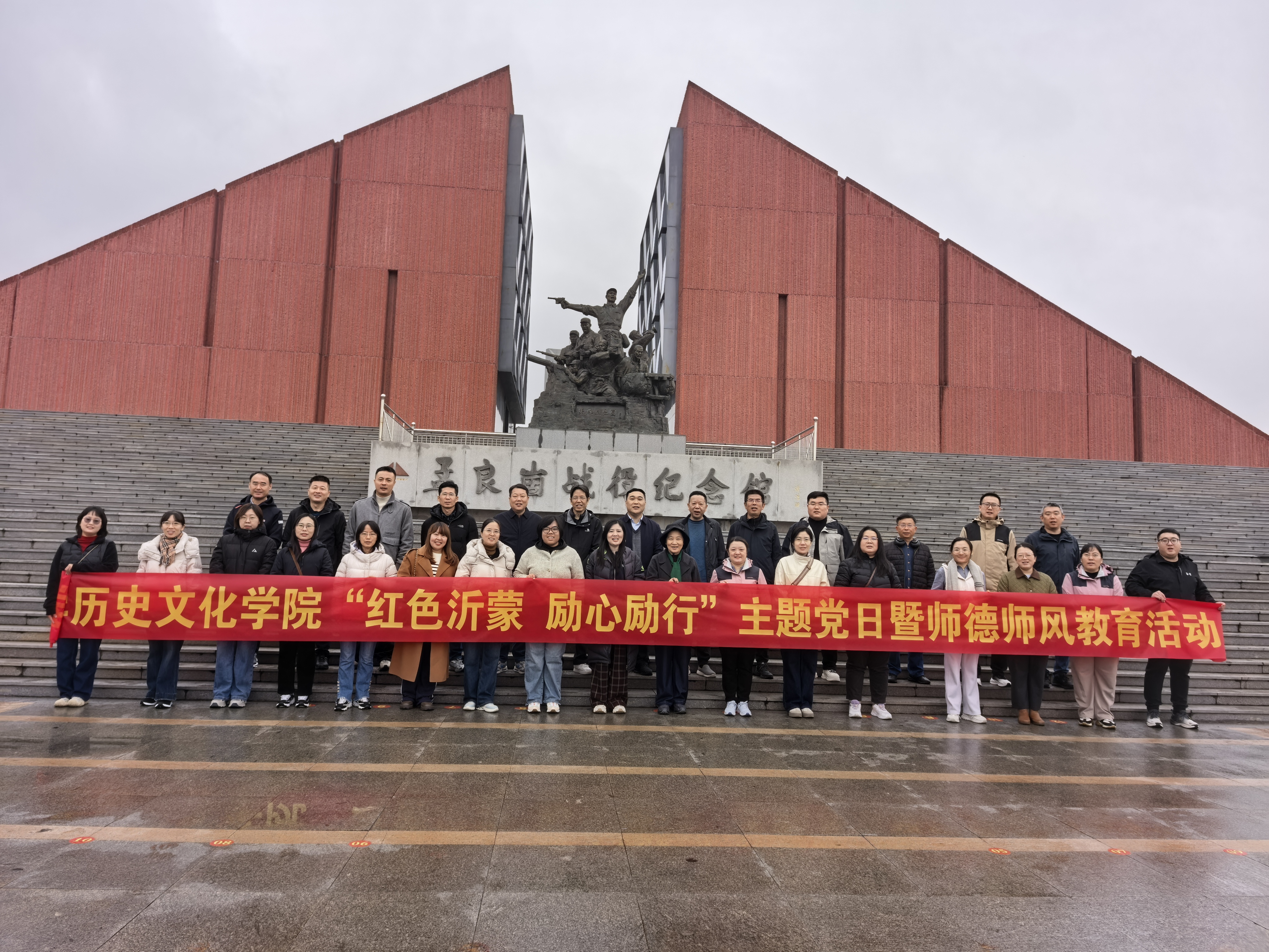 11月8日至9日,历史文化学院组织教职工前往孟良崮战役纪念馆和沂蒙红色影视基地,开展“红色沂蒙、励心励行”主题党日暨师德师风教育活动。此次活动旨在借助实地参观学习,深度激发教职工的爱国情怀与重教热情,锤炼高尚师德,全面提升教师的思想政治素养与职业道德水平。