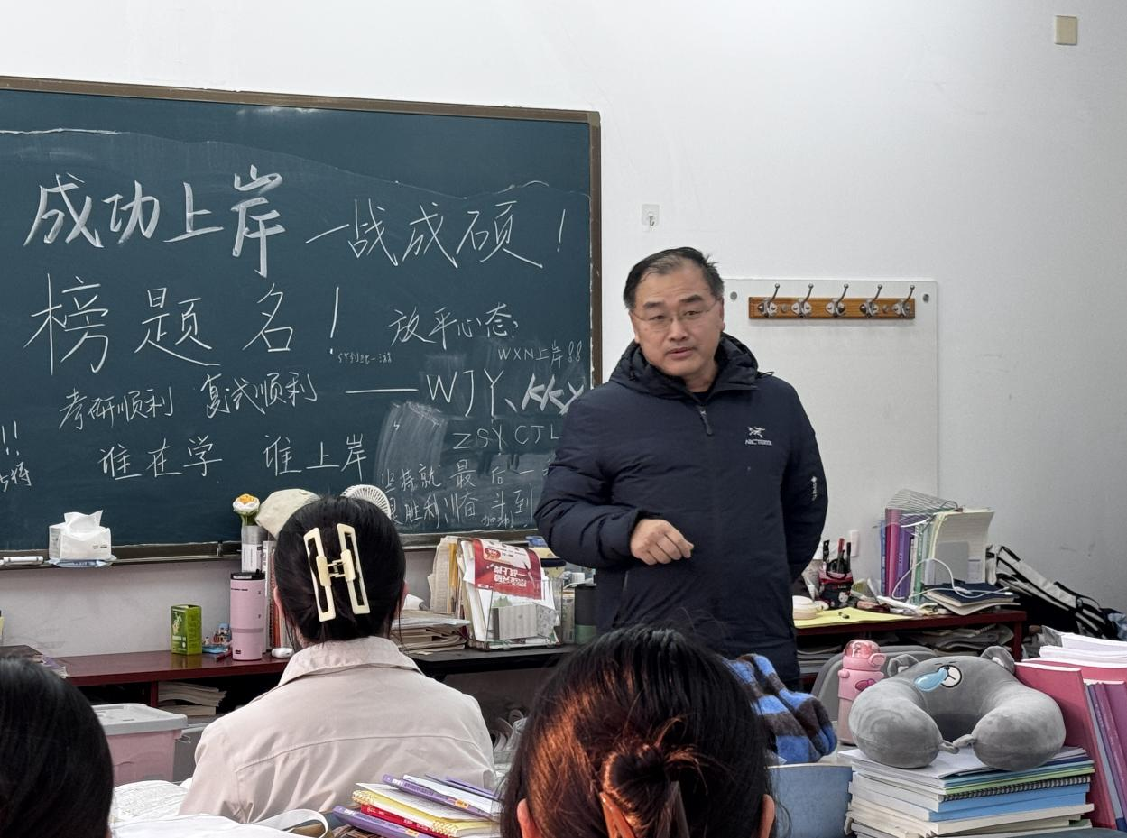 毛院长为考研学子送上祝福,他表示学院永远是同学们最坚实的后盾,鼓励全体考生沉着应考、稳定发挥,满怀信心奔赴考场。