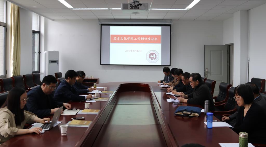 4月30日上午,校长曾庆良来历史文化学院进行走访调研,实地考察学院教学办公环境,并与教师代表进行座谈。校长办公室主任王兴盛、发展规划与学科建设处处长张茂聪、发展规划与学科建设处侯洁等陪同调研。