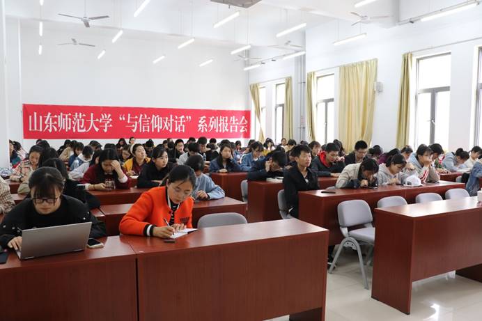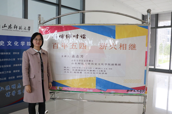 4月25日,由校团委、历史文化学院团委共同主办的“与信仰对话”之《百年五四,薪火相传》讲座于长清湖校区崇德楼114教室举办。本次讲座由山东师范大学历史文化学院副教授盖志芳担任主讲人,历史文化学院2017级辅导员林淑玉主持,二百余名本科生聆听了此次讲座。
