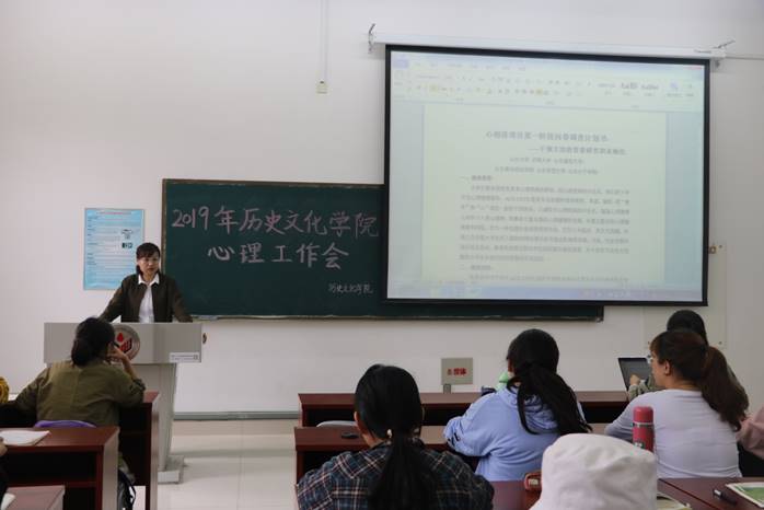 4月24日,历史文化学院于山东师范大学长清湖校区崇德楼116教室举办2019年心理工作会。会议由辅导员郭慧颖主讲,2017级、2018级各班心理委员及各班心理护航员积极参会。