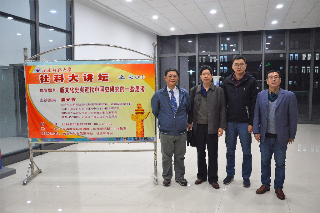 为活跃学术氛围,加强学术交流,10月22日,由历史与社会发展学院和社会科学处联合举办的第700期社科大讲坛在长清湖校区崇德楼116教室开讲。本次社科大讲坛特别邀请台湾中央研究院近代史研究所研究员、胡适纪念馆主任潘光哲博士担任主讲人,做题为“新文化史与近代中国史研究的一些思考”的学术报告。报告由历史与社会发展学院副院长、博士生导师赵文亮教授主持,历史与社会发展学院副院长张登德教授,历史与社会发展学院硕士生导师刘志鹏副教授,学院青年教师刘本森、张世慧、陈静、赵卓然、史慧佳与两百余名本科生、研究生共同聆听了此次讲座。