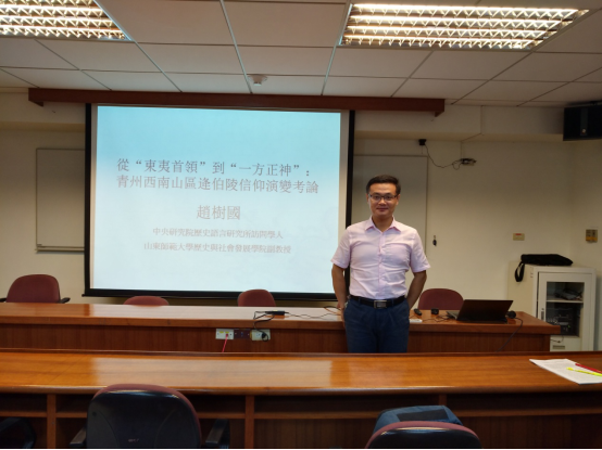 2018年9月27日下午,我院赵树国副教授受邀在台湾“中央研究院”历史语言研究所研究大楼703会议室作了题为《从“东夷首领”到“一方正神”:青州西南山区逄伯陵信仰演变考论》的学术报告。此次报告由台湾“中央研究院”明清研究推动委员会主办,报告由历史语言研究所李仁渊教授主持,台湾“中研院”史语所副所长王鸿泰研究员、台湾中国明代研究学会理事长、台湾暨南国际大学唐立宗教授、台湾“中研院”史语所祝平一研究员、台湾文藻外语大学谢忠志副教授,以及“中研院”史语所、近史所一些研究员、访问学者参加。
